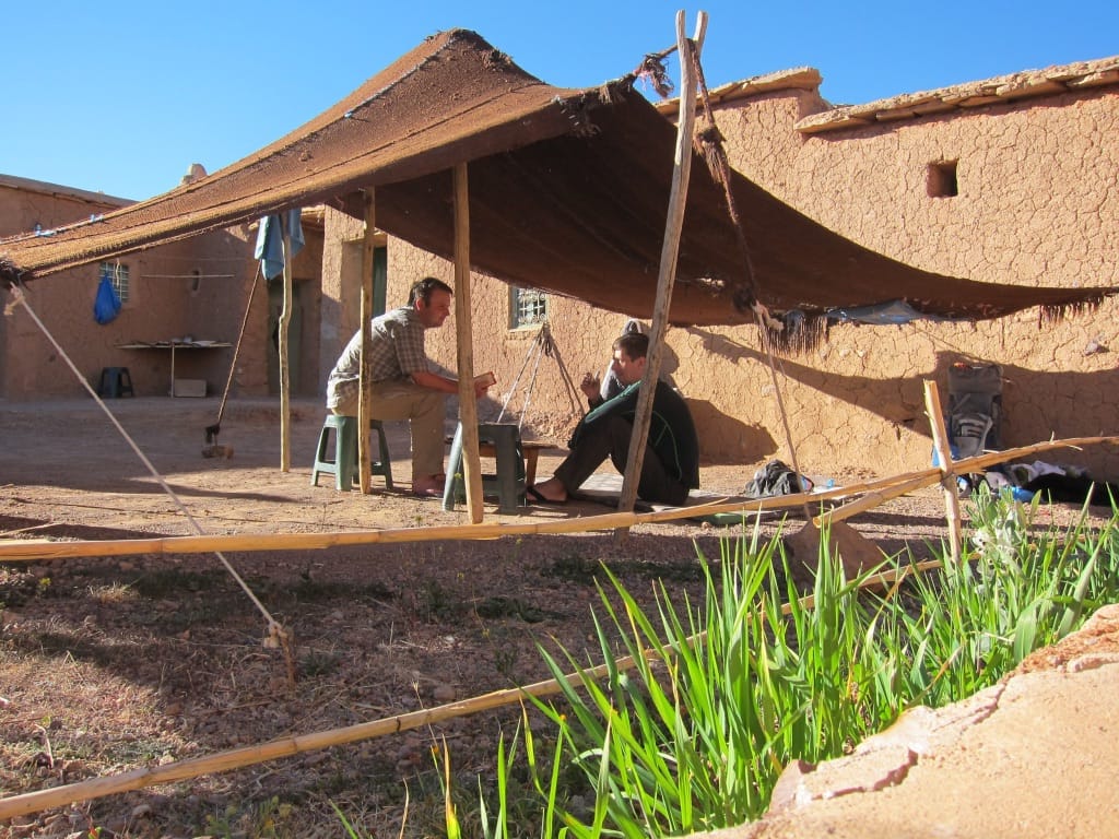 Ein Minibus bringt uns schließlich nach Boumalne de Dades. Tee, Dusche, Terrasse. Zwei Tage brauchen wir, um auch mental wieder in der Zivilisation anzukommen.